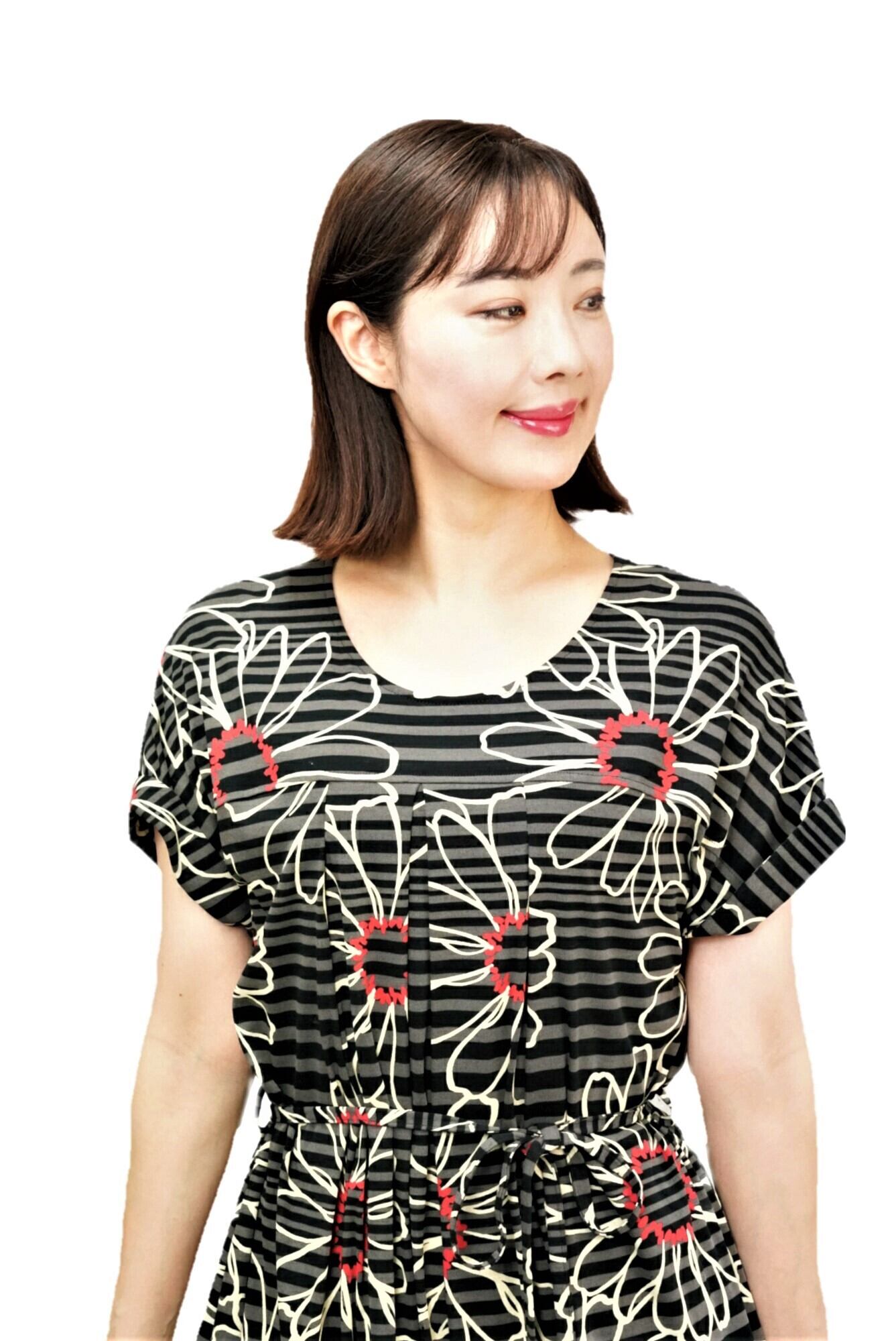最高級の綿のカットソー素材のワンピース。大きな花柄がとても可愛く上品で、肌触りも最高です。