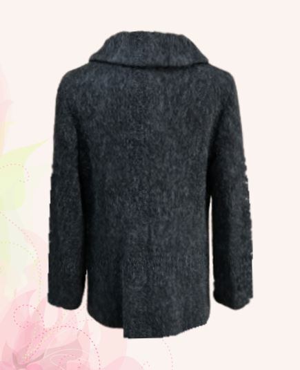 とにかく軽いです。アルパカ混の上質のシャギーのコートで、大きなショールカラーは襟付けの所で絞ることが出来て好きな形で着て頂けます。丈も程よく 着回しの利く便利なコートです。