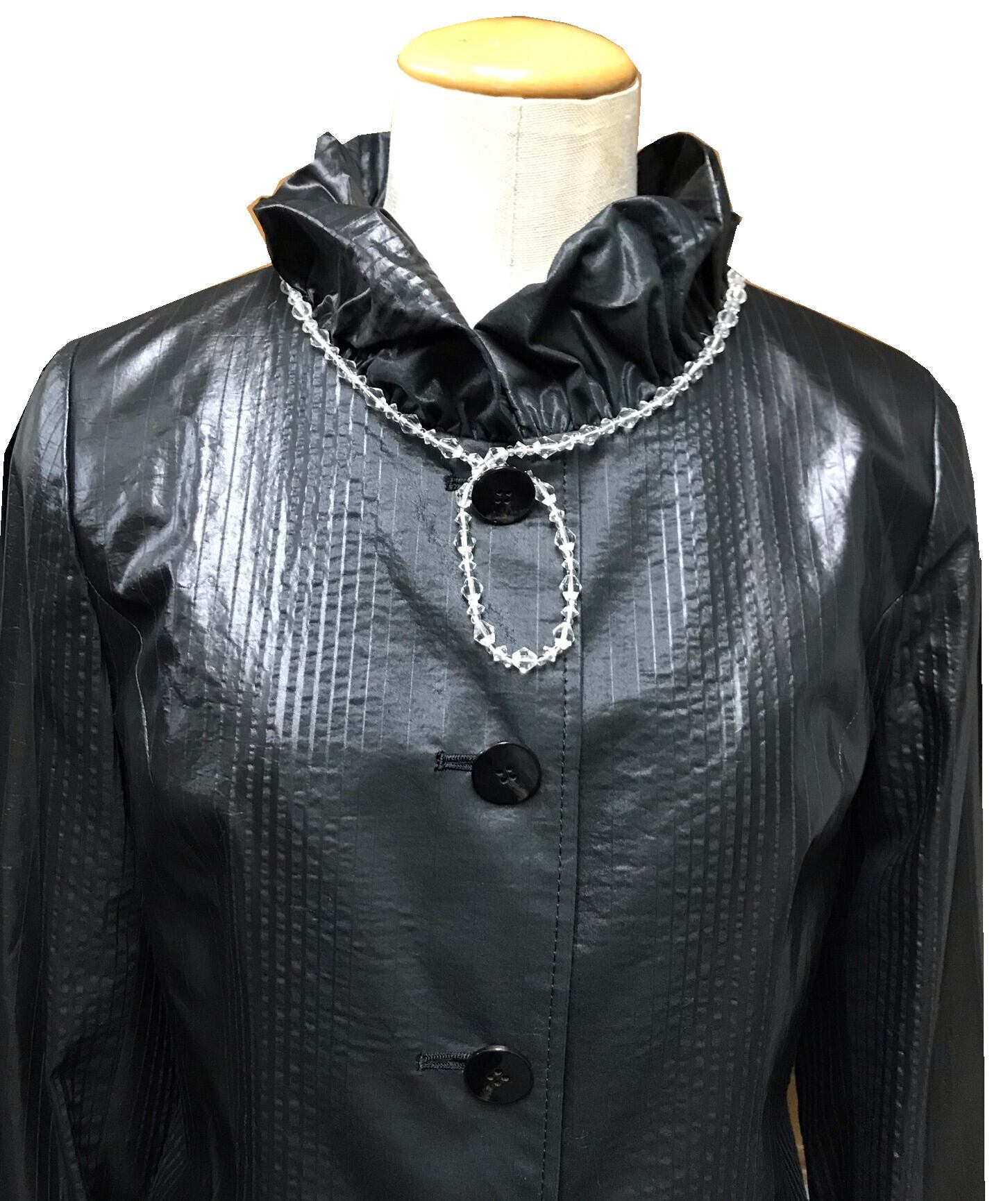 これは1点ものです。誰も着ていません。光沢の有るフランス製の凝った素材と、幅広のギャザー襟がポイントのジャケット
