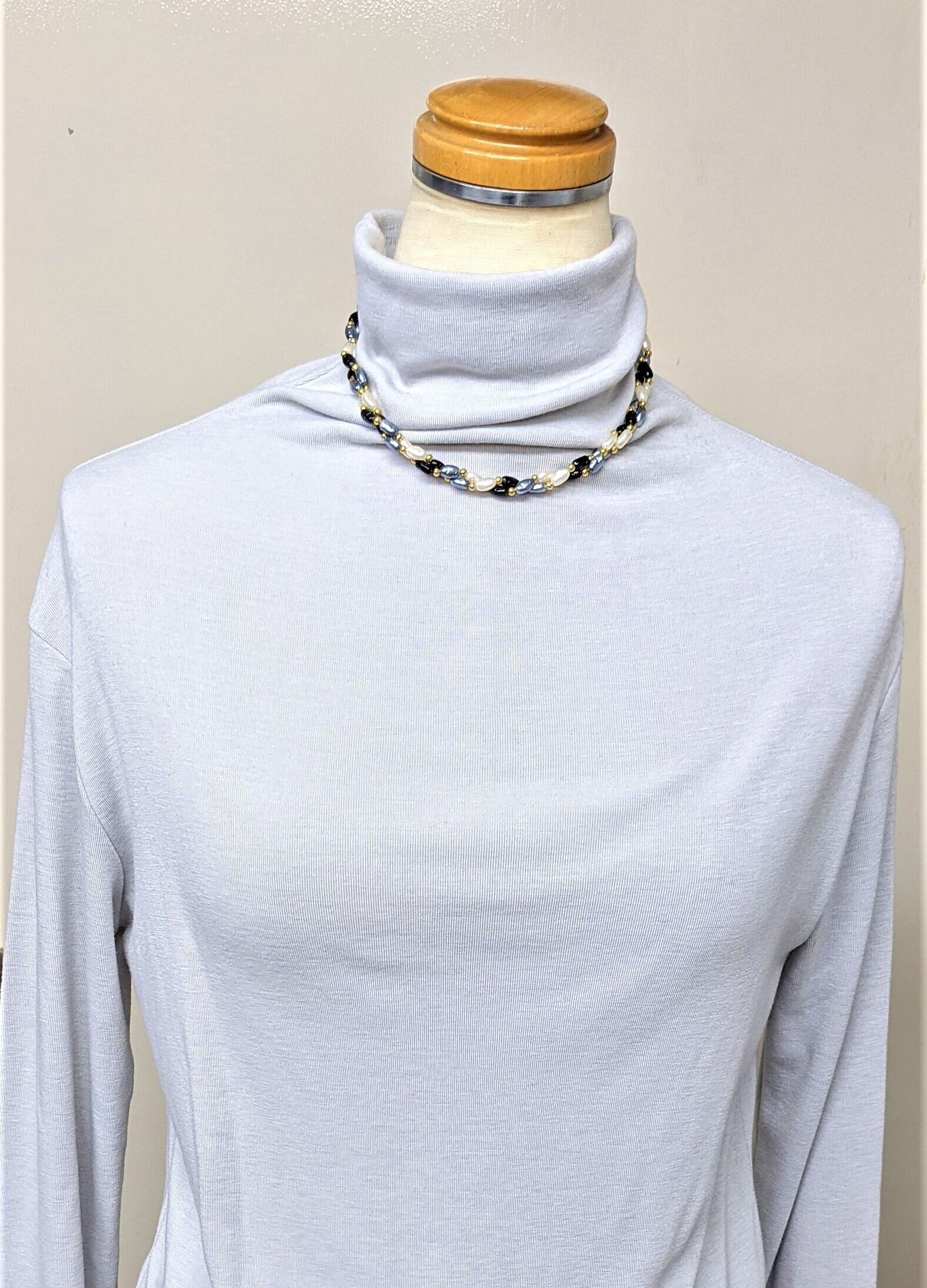 3色にゴールドがうまく混ざって上品で高級感が有るネックレスに仕上がっています。